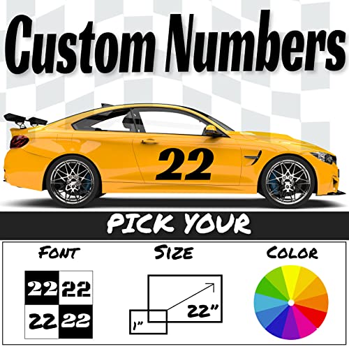 Amazon Com Custom Race Car Letter Number Adhesive Decals Pair 2 Sets Heavy Duty Automotive Car Stickers For Vehicles Boats Cars Trucks Motorcycles Racing Autocross More Pick Your Font